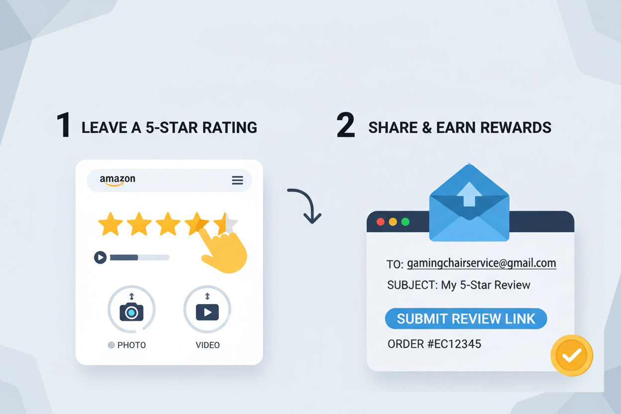 如果您能为您的椅子订单留下五星好评,并上传椅子的照片和视频,我们将不胜感激,并且返现30美元给你。
