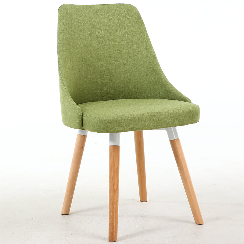 Casual Curved-Back Dining Chair Fabric Upholstery Wooden Legs & Versatile Hues