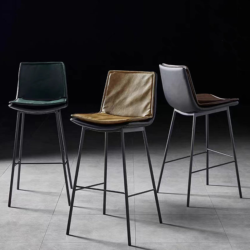 Fixed-Height Leather Bar Stool Retro Textured Upholstery Slim Black Metal Frame for Modern & Luxe Spaces