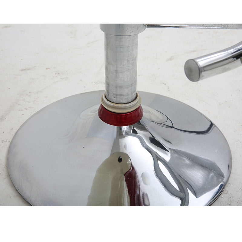 Functionality meets daily needs: the height-adjustable gas lift adapts to different bar/kitchen island heights; the dual-ring chrome footrest eases leg fatigue during long sittings; the sturdy chrome disc base ensures stable seating. The leather surface is easy to wipe clean, and the perforated backrest adds durable, structural support with a touch of retro flair.