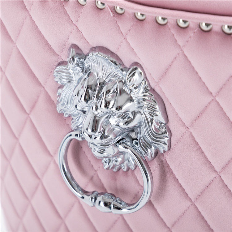 The stool’s design leans into retro-luxe glamour: the soft velvet fabric offers a tactile, cozy feel, while the tufted backrest and studded trim add classic sophistication. The optional lion-head accent serves as a bold focal point, elevating the chair’s visual impact. The range of color options lets you match it to playful, feminine aesthetics (pink), moody industrial luxury (black), or understated elegance (beige/grey).