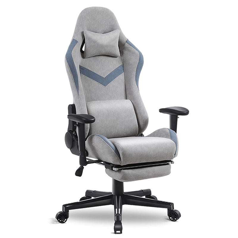 The chair’s design leans into modern comfort: the breathable fabric upholstery keeps you cool during long sessions, while the chevron contrast stitching adds subtle visual depth without overwhelming your setup. The vibrating lumbar pillow provides targeted lower-back relief, and the retractable footrest lets you switch between intense gaming and full-body relaxation. The high-back frame wraps around your body for a secure, immersive feel during gameplay, and the wear-resistant fabric is easy to maintain.