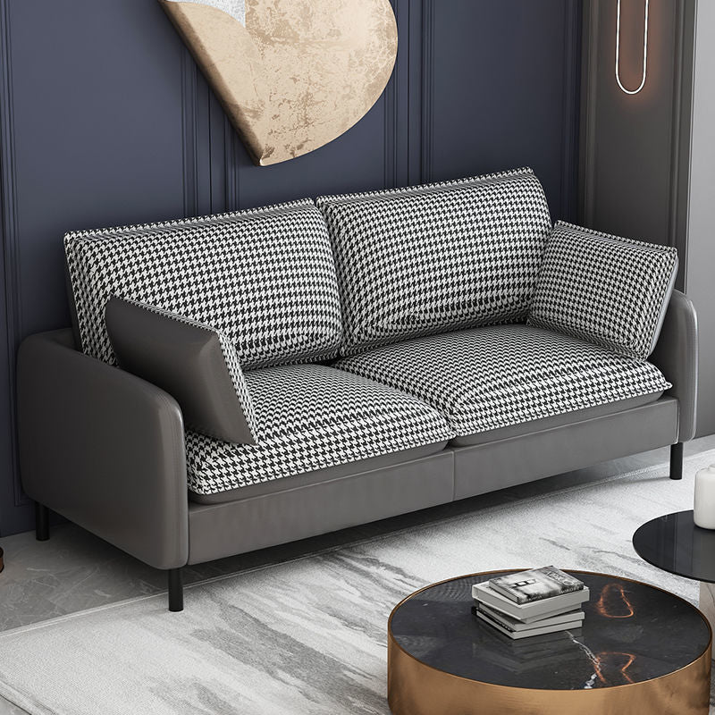 Modern Two-Tone Leather Sofa Modular Set Houndstooth Pattern Options Slim Metal Legs