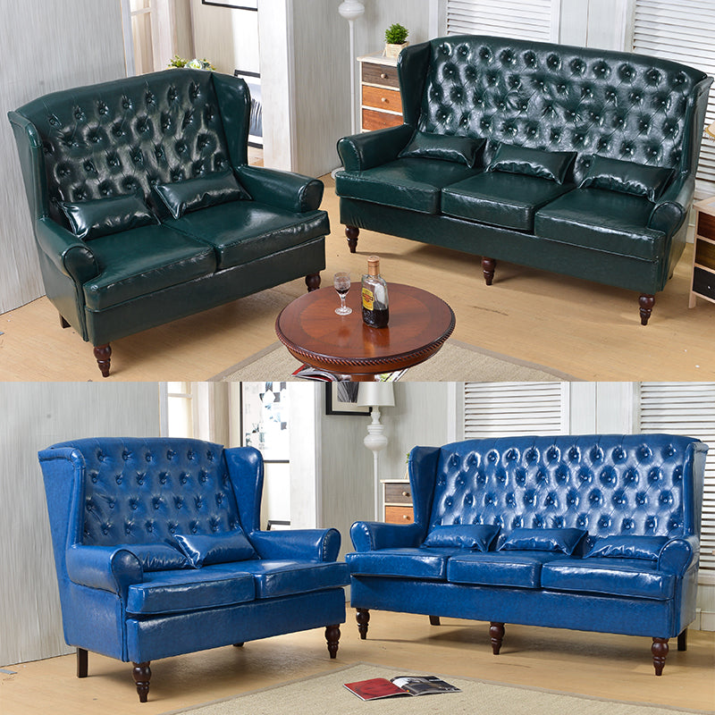 Vintage Brown Leather Wingback Armchair with Ottoman Classic Tufted Design for Living Room